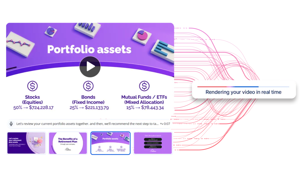 Imagine a retirement savings video that would typically be out of date by the time it was viewed. With SundaySky’s real-time rendering, the viewer always sees the right content.